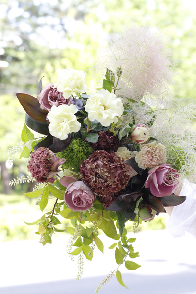 ブーケをお使いになる環境・シチュエーションにあわせて、様々な花材の中から最適な素材を使って仕上げていきます。
